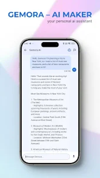 Gemora, kullanıcıların hayal gücünü sanata dönüştürmesine olanak tanır; hayal ettiklerini tarif ettiklerinde, uygulama bunu etkileyici yapay zeka görüntülerine dönüştürür. Uygulama, yazım araçlarından matematik öğretmenine, kişisel planlayıcıdan mülakat koçuna kadar birçok önceden hazırlanmış yardımcı ile doludur. Tüm sohbet geçmişinizi kaydederek, ilerlemenizi kaybetmeden devam etmenizi sağlar. Gemora, öğrenme, verimlilik ve yaratıcılık için kapsamlı bir araçtır.